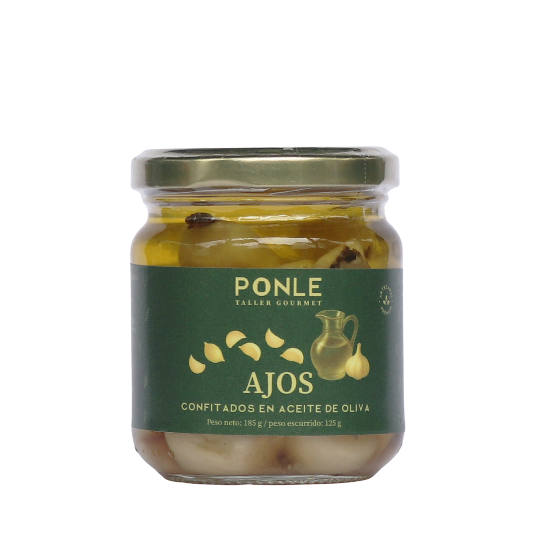 Ajo, aceite de oliva, sal de maras, finas hierbas y especias.