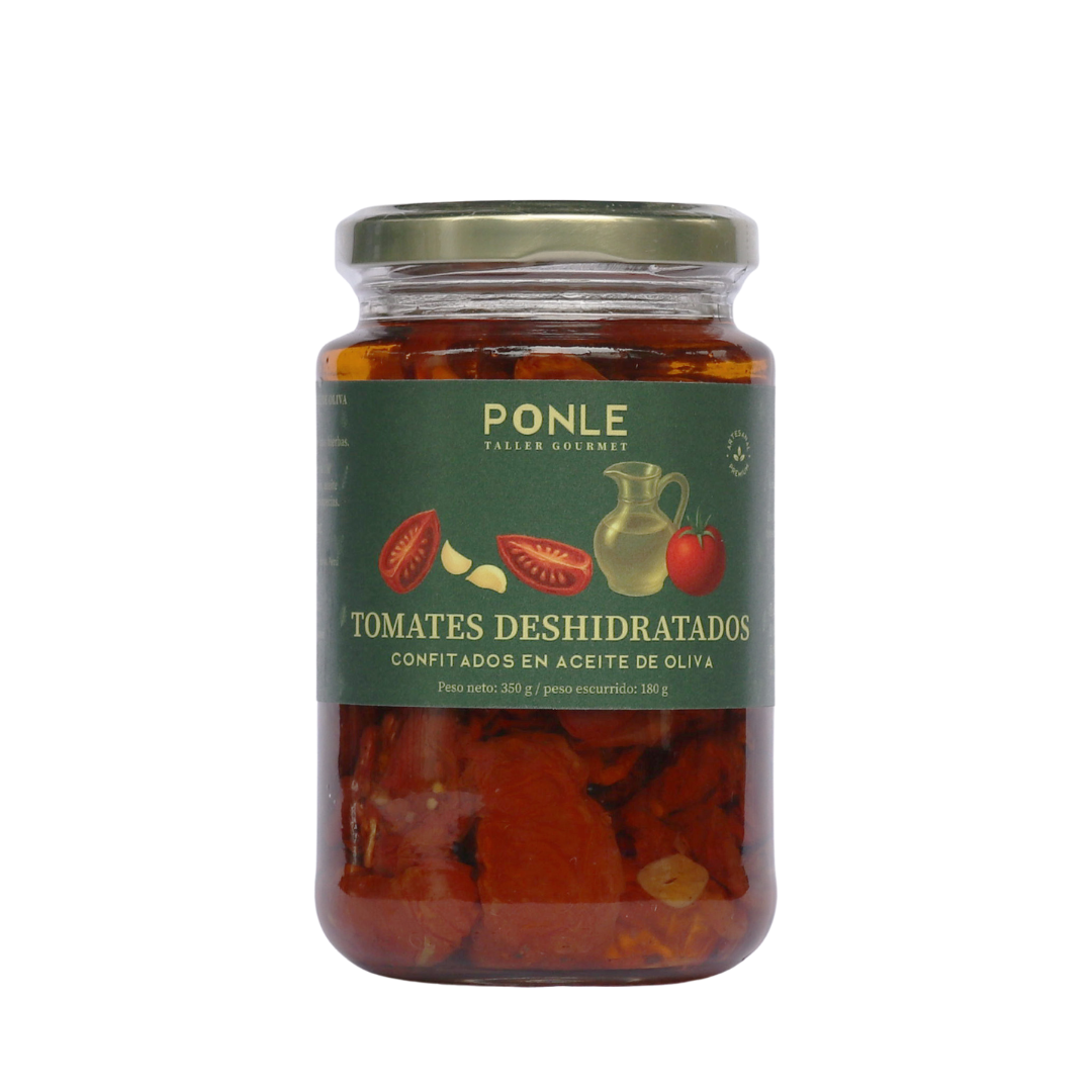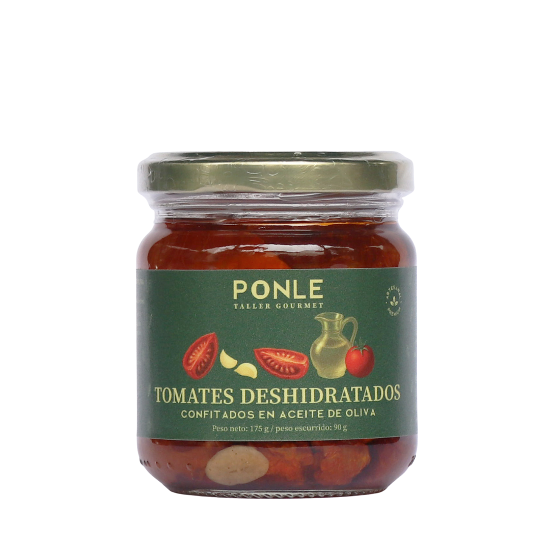 Tomate deshidratado, aceite de oliva, ajo y sal con finas hierbas.